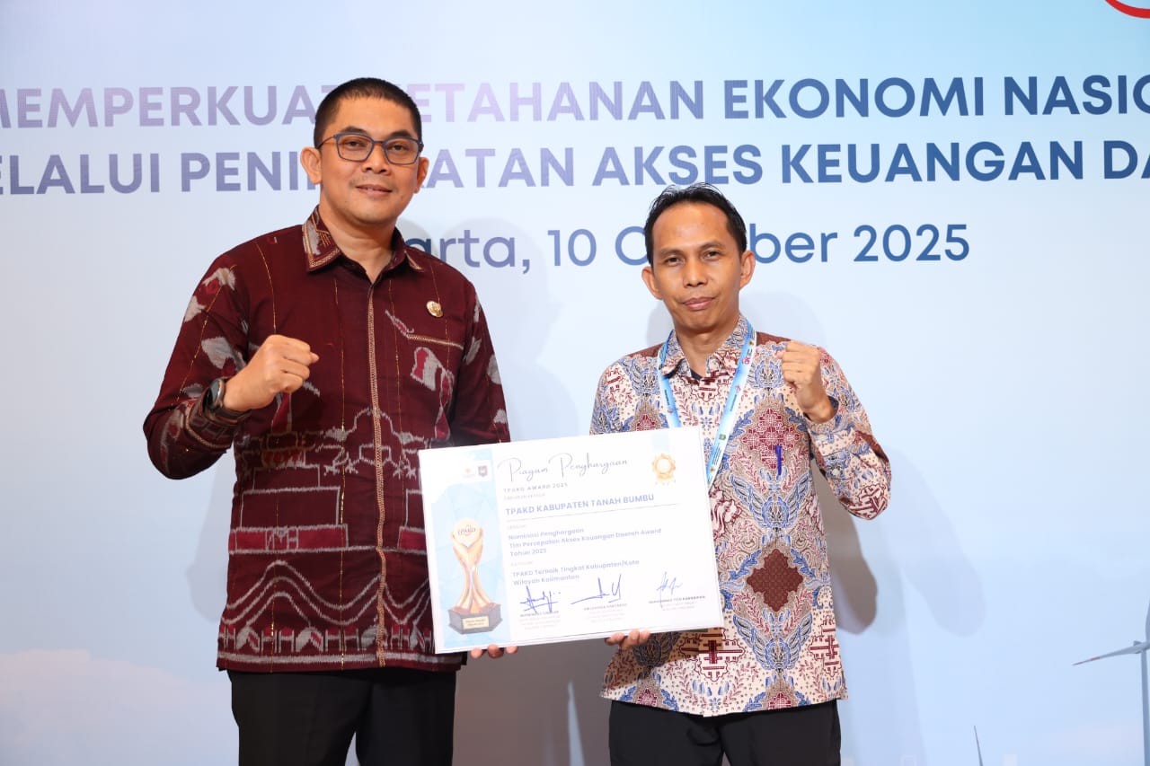 Bupati Andi Rudi Latif Terima Penghargaan TPAKD Nasional untuk Tanah Bumbu