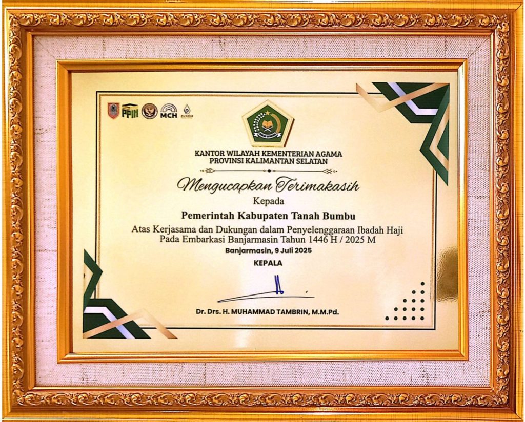 Kabarsiar Tanah Bumbu - Pemerintah Kabupaten (Pemkab) Tanah Bumbu menerima penghargaan dari Kantor Wilayah Kementerian Agama (Kanwil Kemenag) Provinsi Kalimantan…