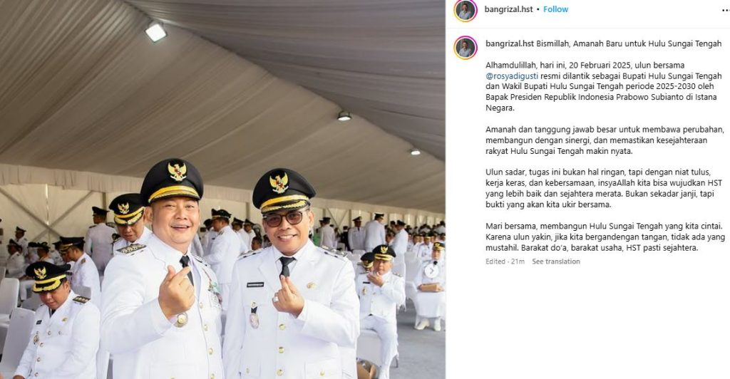 Dilantik Presiden Prabowo, Bang Rizal Siap Membangun Hulu Sungai Tengah dengan Semangat Baru